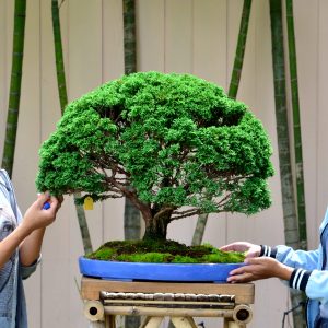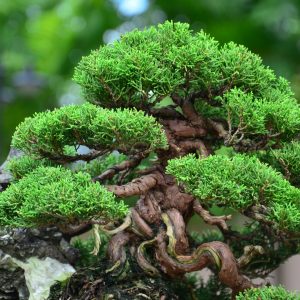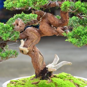 ฮิโนกิ สายพันธ์ล้ำค่าของชาวญี่ปุ่น ต้นนี้เป็นซาวาระฮิโนกิที่มีขนาดใบสั้นแบนนพริ้วไหว มาในรูปแบบบอนไซจำลองของทรงต้นก้ามปู มี landscape ที่ตกแต่งด้วยเนินมอสและหินสวยงามล้ำค่า